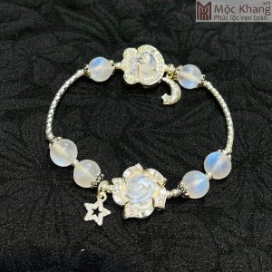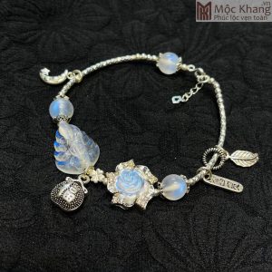 Lắc Bạc Đá Mặt Trăng (Moon) Mix Hồ ly Hoa Mẫu Đơn