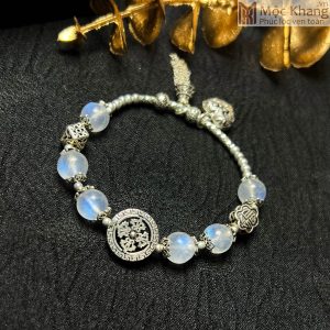 Lắc Bạc Đá Mặt Trăng (Moon) Hồ Ly Mix Hoa Mẫu Đơn