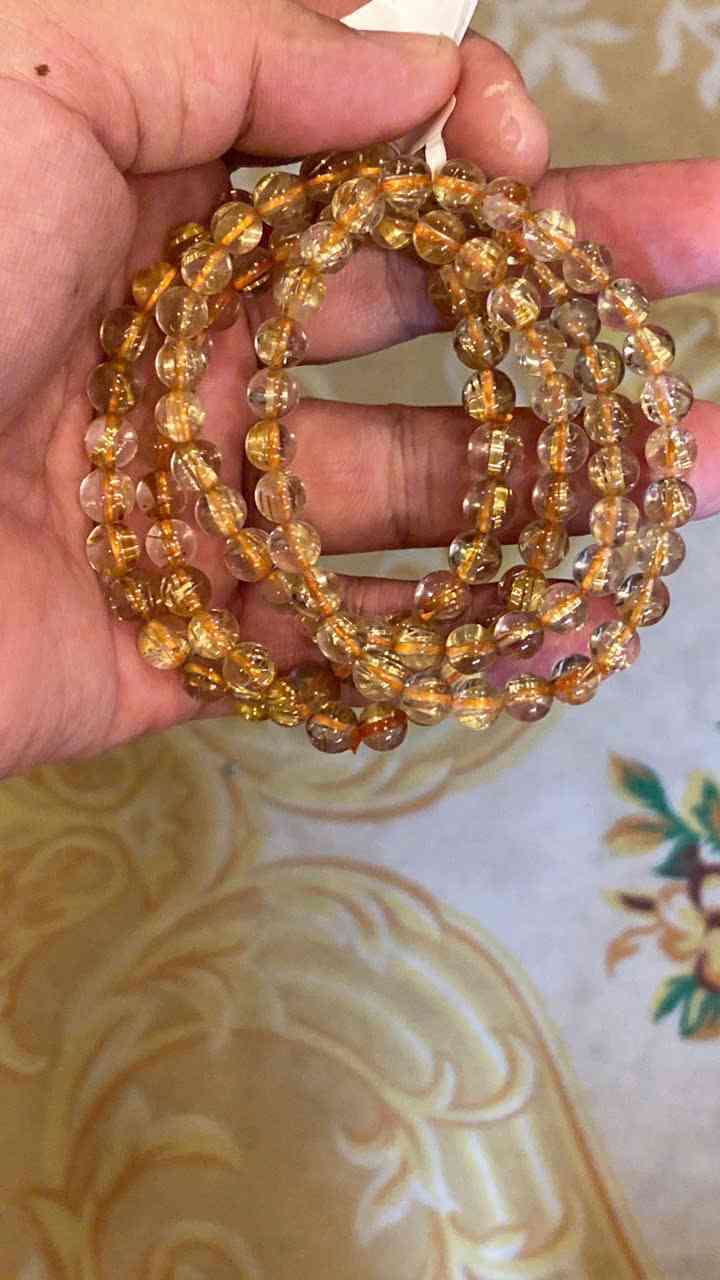 Chuỗi 108 Hạt Đá Thạch Anh Tóc Vàng Đường Kính 6.5 (mm)