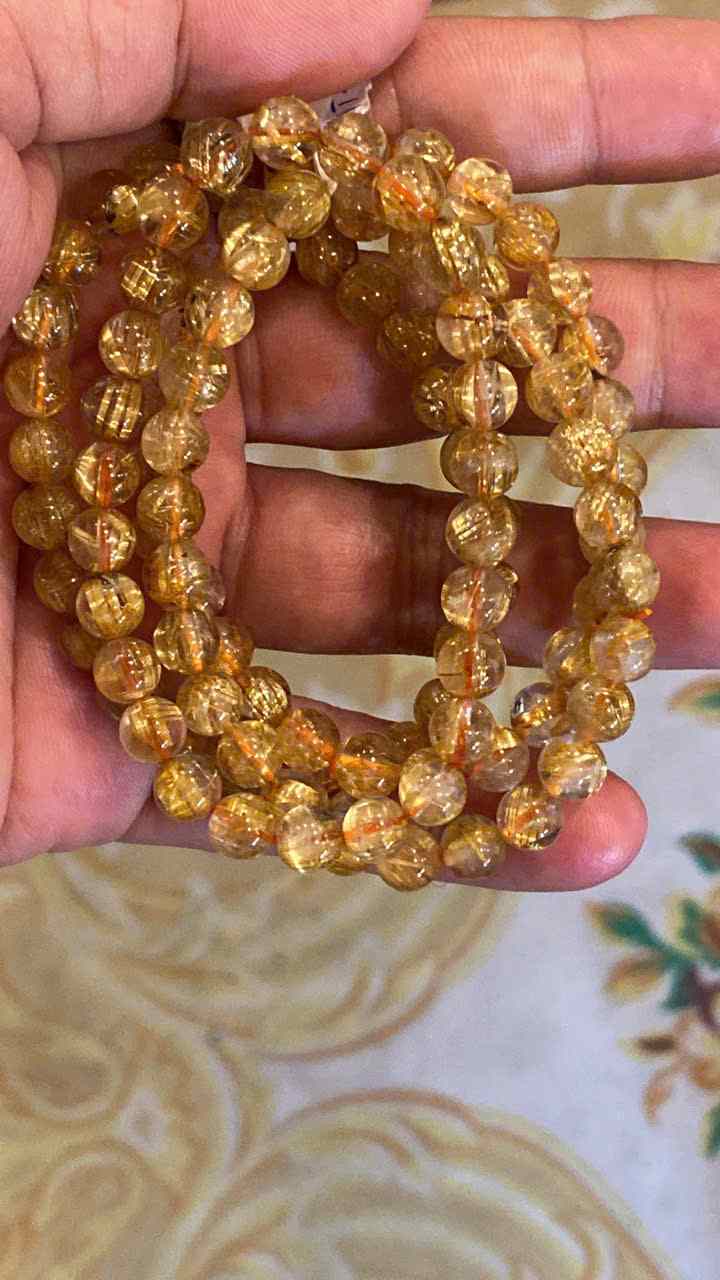 Chuỗi 108 Hạt Đá Thạch Anh Tóc Vàng Đường Kính 7.1 (mm)