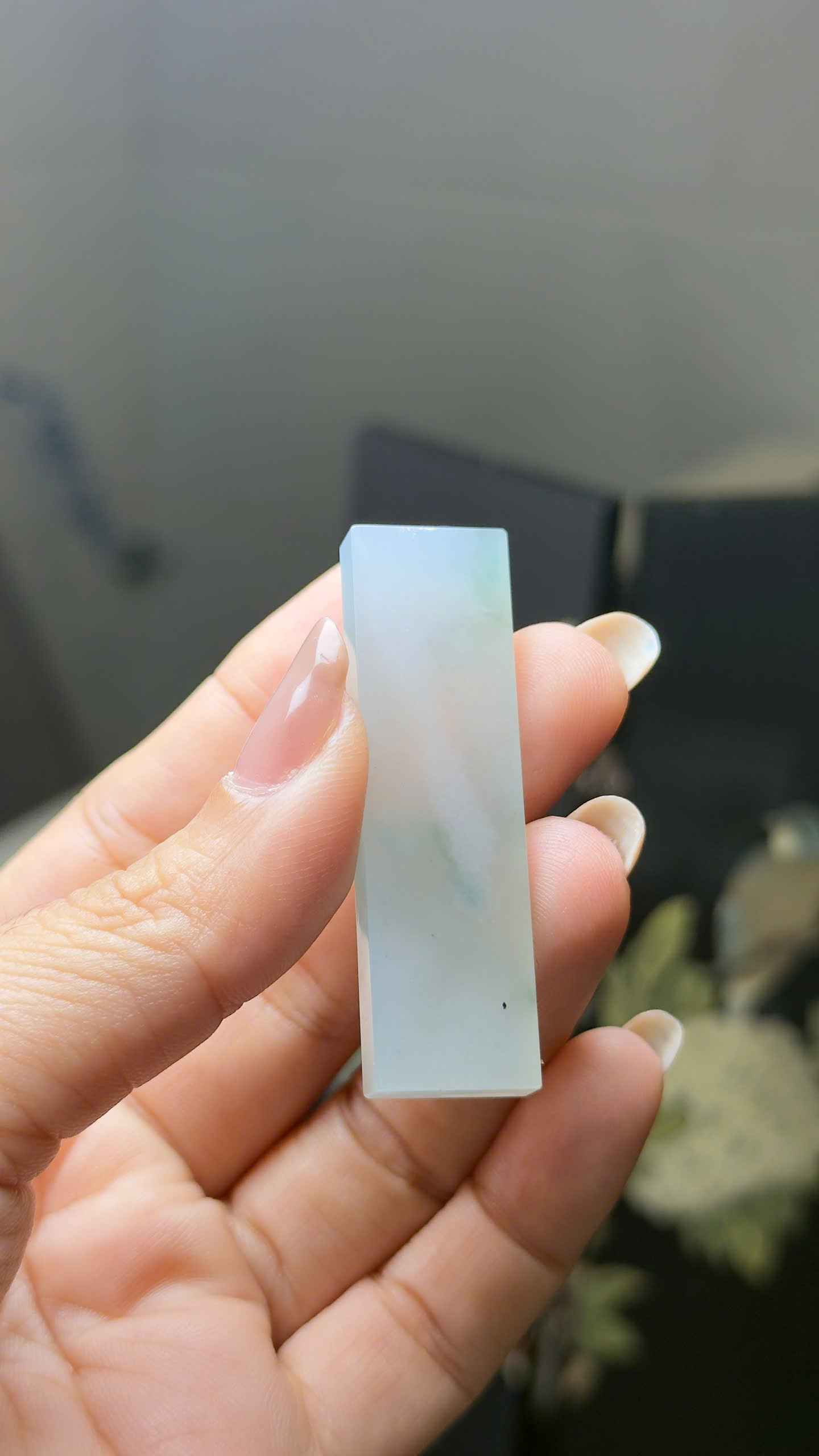 Mặt Dây Ngọc chất nếp băng VSB nổi bật với độ trong và mịn, bề mặt sáng bóng như “cục thạch”, mang lại cảm giác thanh khiết và cao cấp. Form dáng thon dài, đơn giản nhưng cực kỳ tinh tế và dễ phối.