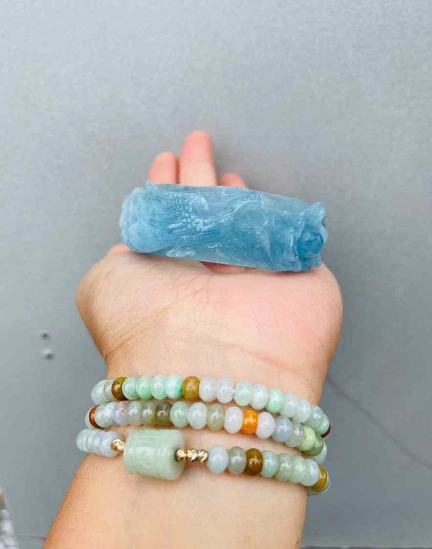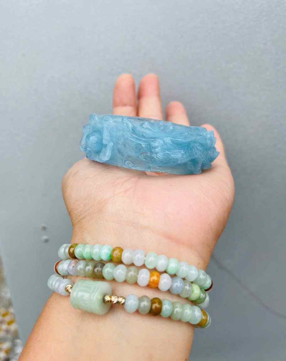 Vòng Tay Ngọc Aquamarine Chạm Long Phụng Ni 49.5 (cm)